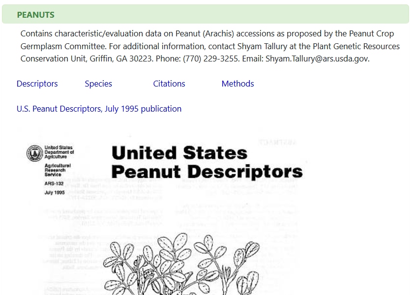 When you select a Crop (under the Descriptors menu option), if you click on the link that displays below the box with the crop names, you can review the selected crop's details - several links will be listed, as shown in the second image below.
