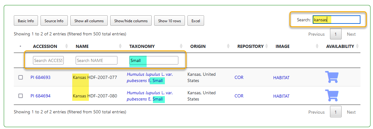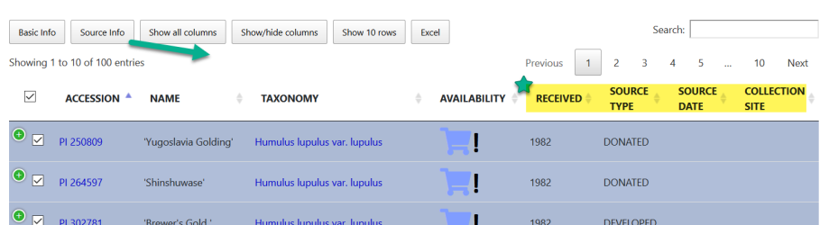 | B | option to display any available observation data for displayed accessions |